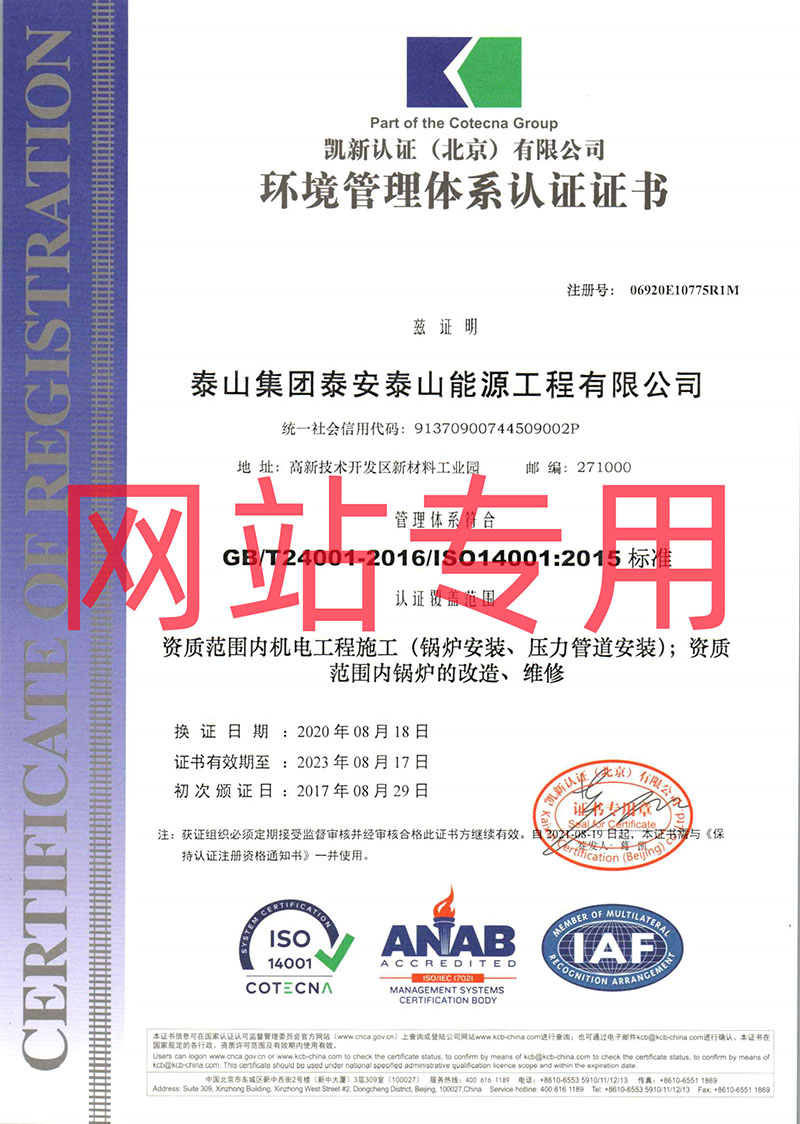 環(huán)境管理體系認(rèn)證證書(shū)